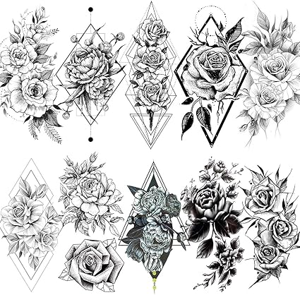 Laroi 10 Fogli Grande Fiori Sexy Tatuaggi Temporanei Geometrici Adulti In Stile Rosa Peonia Gioielli Falsi Impermeabile 3d Realistico Autoadesivo Tatuaggio Temporaneo Donna Polso Pasta Tattoos Amazon It Bellezza