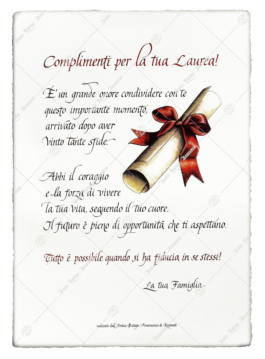 Pergamena Di Laurea Decorata Con Calligrafia Elegante Idea Regalo Personalizzata Con La Tua Dedica Amazon It Handmade