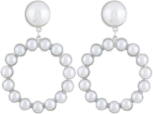Laancoo Perla Di Faux Circle Orecchini Unico Disegno Di Grandi Dimensioni Dichiarazione Gli Orecchini Orecchini Trafitto Per Orecchini Argento Donna Amazon It Gioielli