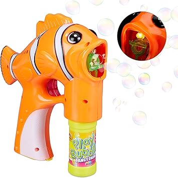 Relaxdays Pesce Led A Batteria Pistola Sparabolle Per Bimbi Liquido Per Bolle Incluso Arancione Colore 10024931 Amazon It Giochi E Giocattoli