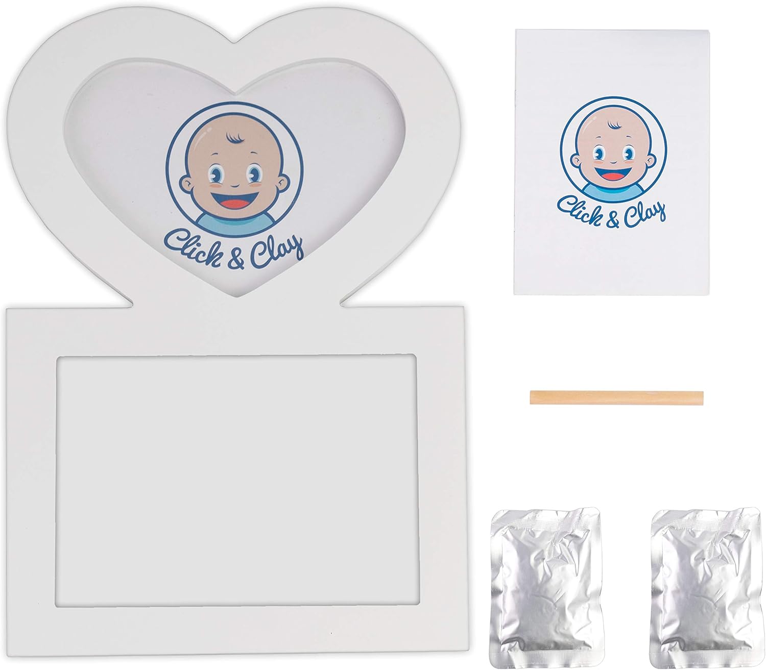 Cornici Per Foto Prima Infanzia Click Clay Idea Regalo Battesimo Bianca Cornice Portafoto A Forma Di Cuore Con Kit Per Impronte Manina E Piedino Neonato