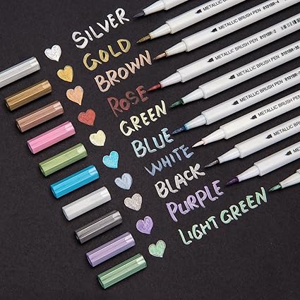Bianyo Pennarelli Metallici Con Punta A Pennello Colorati Per Calligrafia Album Disegnare Scrivono Su Carta Pietra Vetro E Ceramica 10 Colori Amazon It Cancelleria E Prodotti Per Ufficio