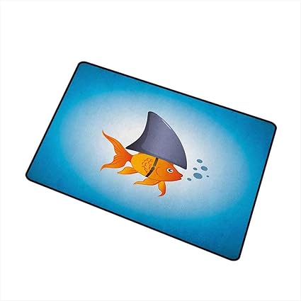 Lindsay Gosse Tappetino Per Squalo Piccolo Pesce Rosso Che Indossa Una Pinna Di Squalo Per Spaventare I Predatori Concetto Di Successo Il Tappetino Per Porta E Inodore Viola Blu Grigio Arancione Amazon It