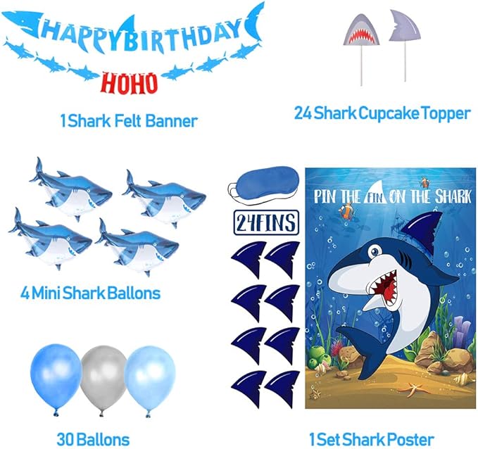 Decorazioni Di Compleanno Di Squalo Per Ragazzi Con Striscioni Di Buon Compleanno Pin Pinna Sul Gioco Di Squali Palloncini Di Squalo Baby Per Feste Amazon It Giochi E Giocattoli