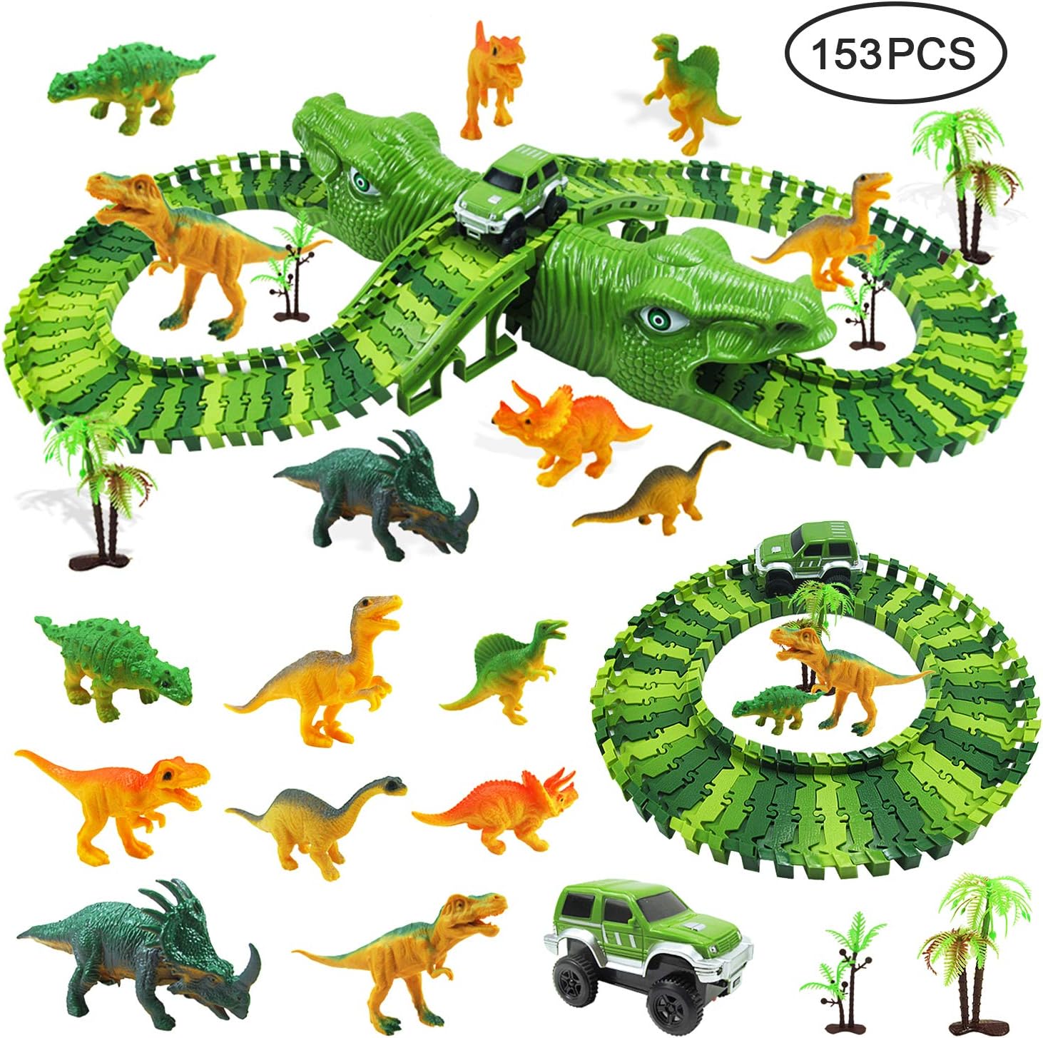 Diealles Shine Pista Dei Dinosauri Con Dinosauro Giocattolo 153 Pcs Pista Macchinine Dinosauro Per Bambini Ragazza Ragazzo 2 3 4 5 6 Anni Piste Da Corsa Slot Car Piste Da Corsa E Accessori
