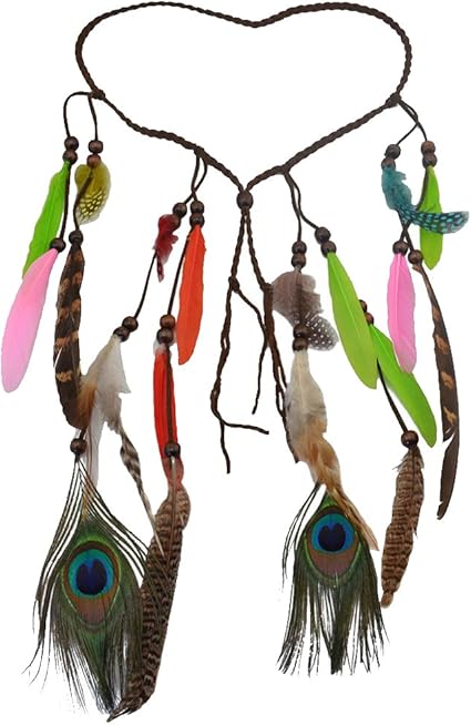 Fascia Capelli Boho Accessorio In Disegno Pavone Piuma Cerchietto Con Nappa Ebay