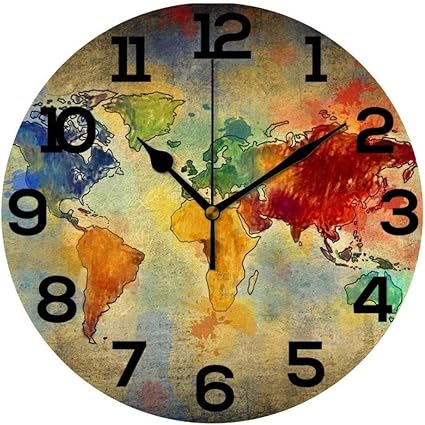 Dbn Orologio Da Parete Silenzioso Con Planisfero Disegnato A Mano Ideale Per Sala Da Pranzo Camera Da Letto Ufficio Cucina Salotto Salotto Hotel Caffetteria Scuola Amazon It Casa E Cucina