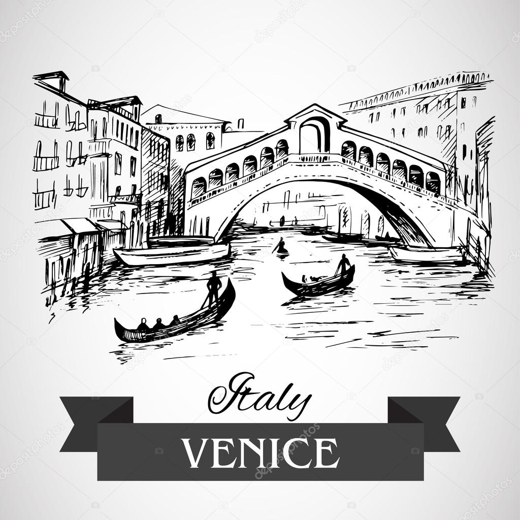 Ponte Lido Isola Venezia Mano Disegnato Rialto Ponte Lido Italia Isola Schizzo Venezia Illustrazione Mano Canstock