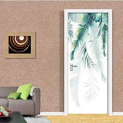 Laonieshangmao Adesivo Per Porte Foglie Di Banana Nordiche Disegnate A Mano 3d Adesivo Da Parete Impermeabile Autoadesivo Adesivi Da Parete Per Porte Decorative 77x200cm Amazon It Casa E Cucina