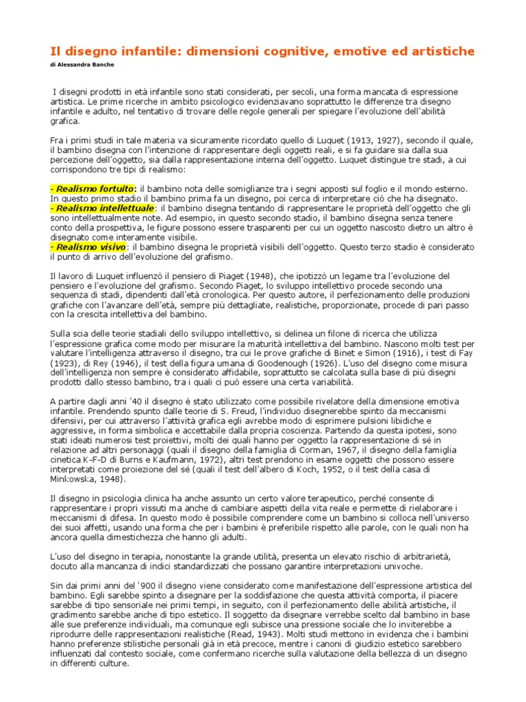 Il Disegno Infantile Una Rilettura Psicologica Quaglia Docsity