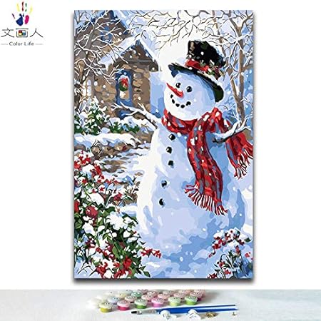 Kykdy Foto Di Colori Fai Da Te Con Numeri Con Colori Pupazzo Di Neve Natalizia Immagine Di Natale Disegno Di Pittura Con Numeri Incorniciati 90254 Pupazzo Di Neve 40x50 Senza Cornice Amazon It