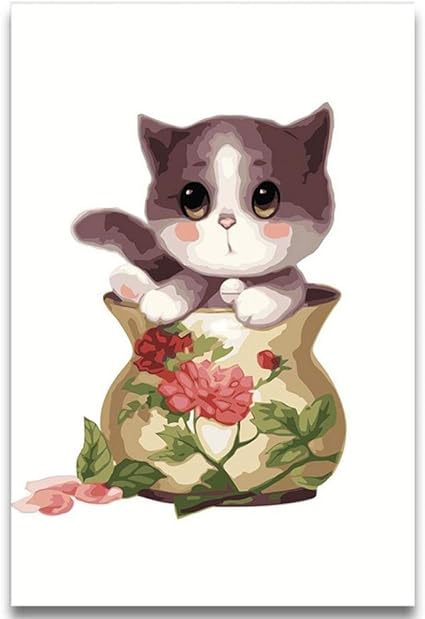 Waofe Pittura A Olio Per Bambini Con Numeri Simpatici Animali Foto Colorare Con Numeri Gatto In Vaso Di Fiori Quadro Artistico Dipinto Con Kit Amazon It Fai Da Te