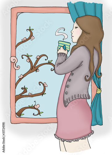 Ragazza Alla Finestra Beve Il Caffe Buy This Stock Illustration And Explore Similar Illustrations At Adobe Stock Adobe Stock