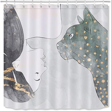 Nfdg Ragazza Disegnata A Mano E Cat Pattern Materiale Impermeabile Stampato In 3d 180x180cm Amazon It Casa E Cucina