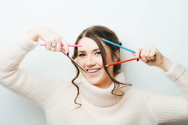 Ragazza Disegnata A Mano In Blu Marrone Verde Carta Da Parati Carte Da Parati Frangia Figlia Comico Myloview It