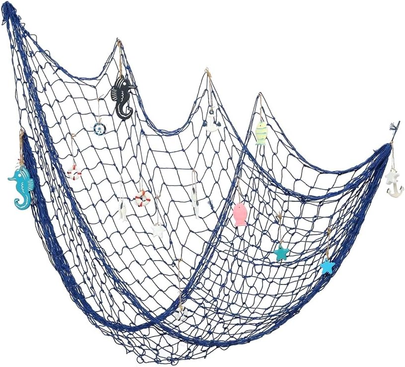 Fangoo 200 Cm X 150 Cm Rete Da Pesca Con Conchiglie Decorazioni A Tema Da Spiaggia Per La Festa In Casa Soggiorno Camera Da Letto Decorazioni In Stile Mediterraneo Decorazioni Murali Blu