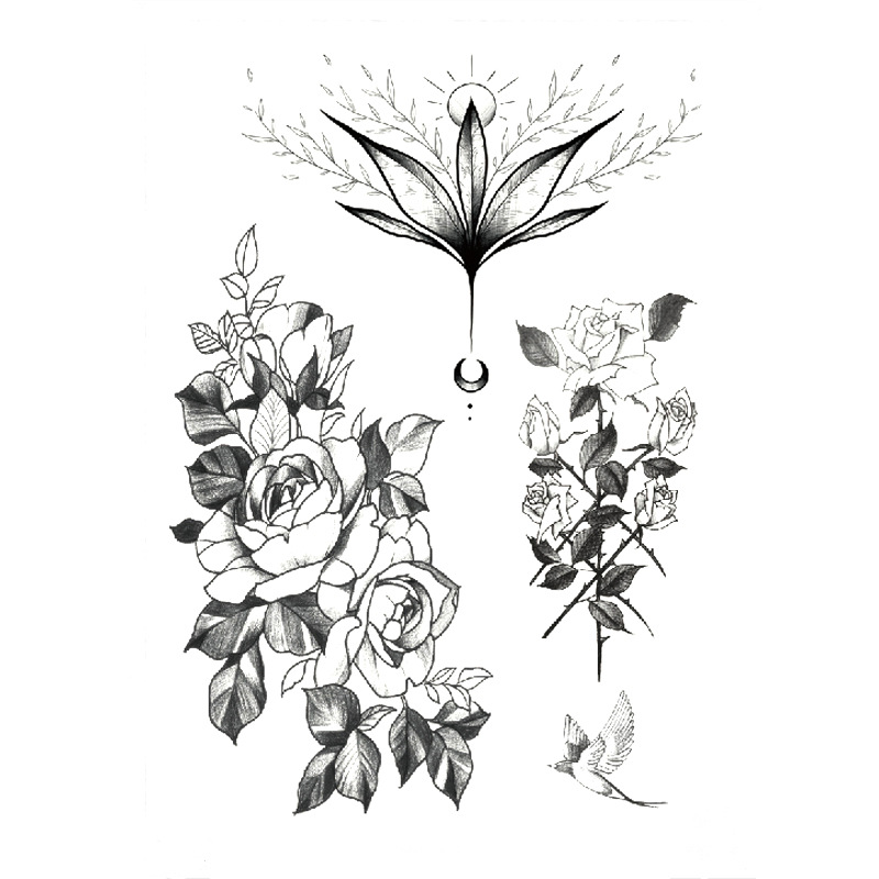 Lnnhjb Dark Line Rose Tattoo Paste Waterproof Flower Arm Girl Bad Girl Long Long Fall Black Good Sexy Amazon It Giochi E Giocattoli