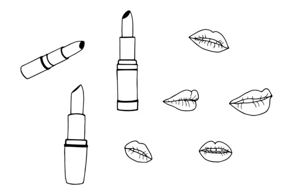 Labbra Rossetto Appartamento Set Isolato Illustrazione Fondo Vettore Disegno Makeup Rossetto Bianco Icona Canstock