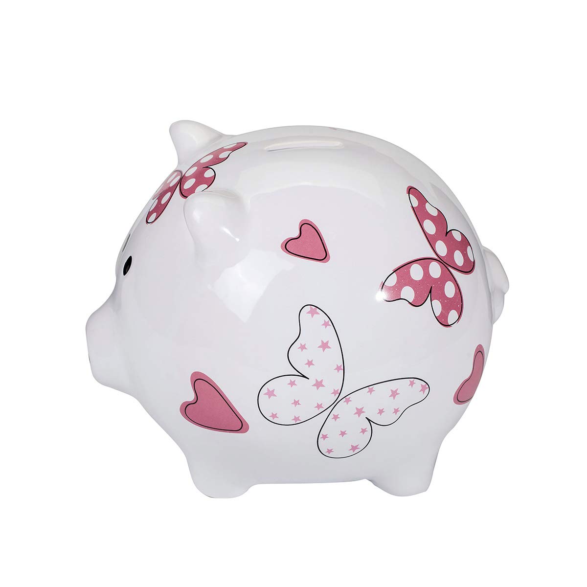 Adolescenti Regalo Spotted Dog Gift Company Salvadanaio Grande Maialino Piggy Bank Bianco Ceramica Con Disegno Di Farfalle E Cuori Rosa Per Ragazze Bambini E Adulti Salvadanai Decorativi Casa E Cucina