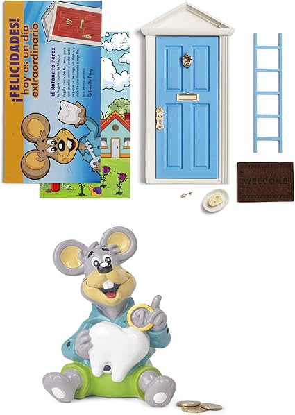 Topolino Dei Denti Ratoncito Perez Porta Magica Azzurra Salvadanaio Per Bambini Disegno Per Annotare E Colorare Le Date Dei Denti Caduti Cartolina Di Auguri Versione Spagnola Amazon It Casa E Cucina