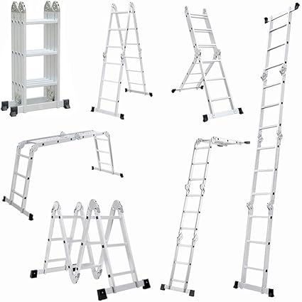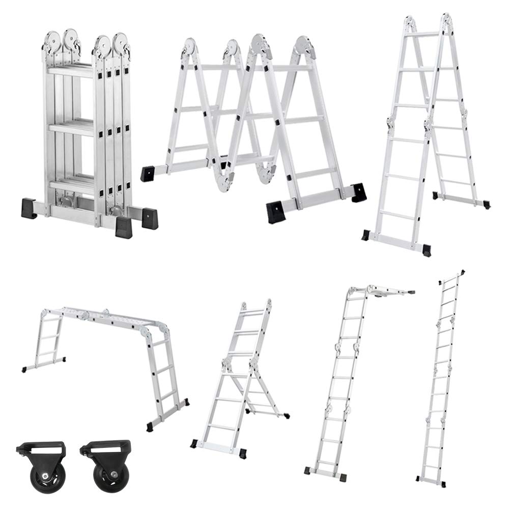 Scale Multiuso Fai Da Te Pieghevole 4 X 3 Pioli Portata Fino A 150 Kg Multiuso Scala Multifunzione 6 In 1 4 X 4 Pioli In Alluminio 4 X 5 Pioli Con 2 Ponteggi Aufun