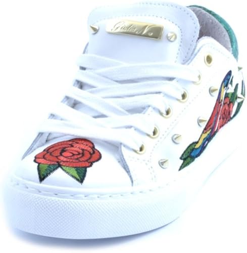 Giulia N Scarpe Sneakers Da Donna Pelle Bianca Con Disegno Di Pappagallo E Fiori Cuciti Sulla Parte Laterale Della Tomaia Prodotto Made In Italy Amazon It Scarpe E Borse