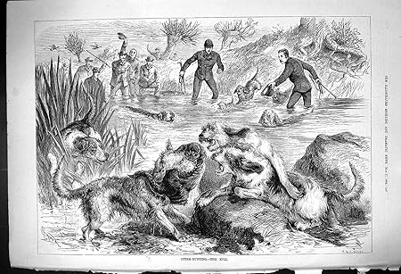 Old Print Una Stampa Antica Dello Sport 1882 Di Scena Del Fiume Di Huntsment Di Uccisione Dei Cani Di Segugi Di Caccia Della Lontra Amazon It Casa E Cucina