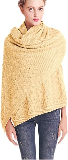 Prettystern Sciarpa 100 Cachemire Poncho Caldo Leggero Modello A Costine Caldo A Coste Fantasia Beige Amazon It Abbigliamento