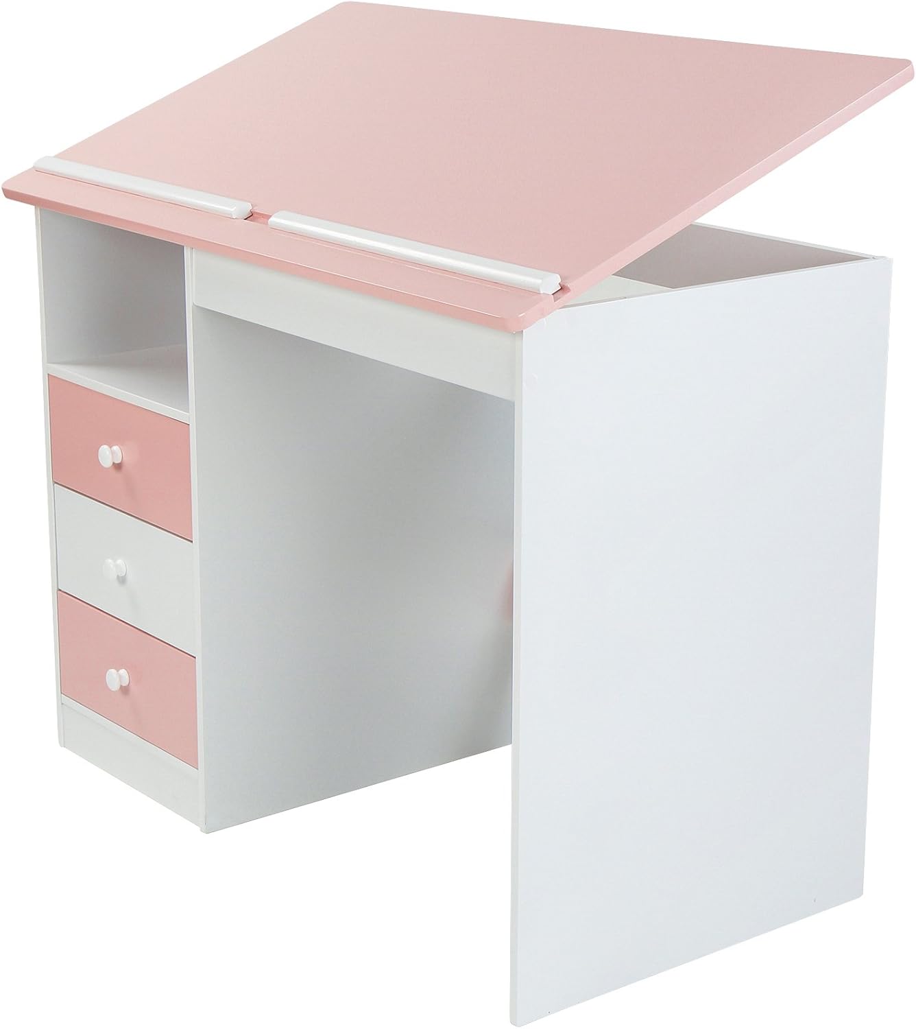 Scrivanie Casa E Cucina Colore Bianco Scrivania Per Bambini Angolo Regolabile Scrivania Da Ufficio 100x55x73cm Tavolo Da Disegno Inclinabile Con 3 Cassetti E 1 Ripiano Mdf Stabile