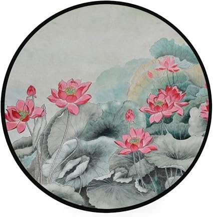Tappeto Rotondo Con Disegni Cinesi Di Loto E Ninfea Grigia Antiscivolo Morbido Per Yoga Giochi Per Bambini Per Camera Da Letto Soggiorno Sala Giochi Amazon It Prima Infanzia