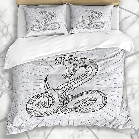 Set Copripiumino Pericolo Serpente A Sonagli Serpente Vipera Contorno Disegnato A Mano Tatuaggio Vintage Disegno A Serpente Cobra Design Bianco Biancheria Da Letto In Microfibra Con 2 Fodere Per Cusci Amazon It Casa
