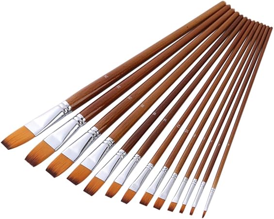 Set Di 13 Pennelli Da Disegno A Punta Piatta Steellwingsf Per Acquerelli E Pittura A Olio Marrone In Acrilico Pennelli Pittura