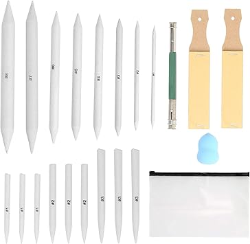 Jzk 24 X Sfumini In Carta Da Disegno Per Disegnare A Matita Carboncino 6 Misure Diverse Set Sfumini Disegno Con 2 Blocchetti Di Carta Vetrata Per Temperare Punta Amazon It Casa E Cucina