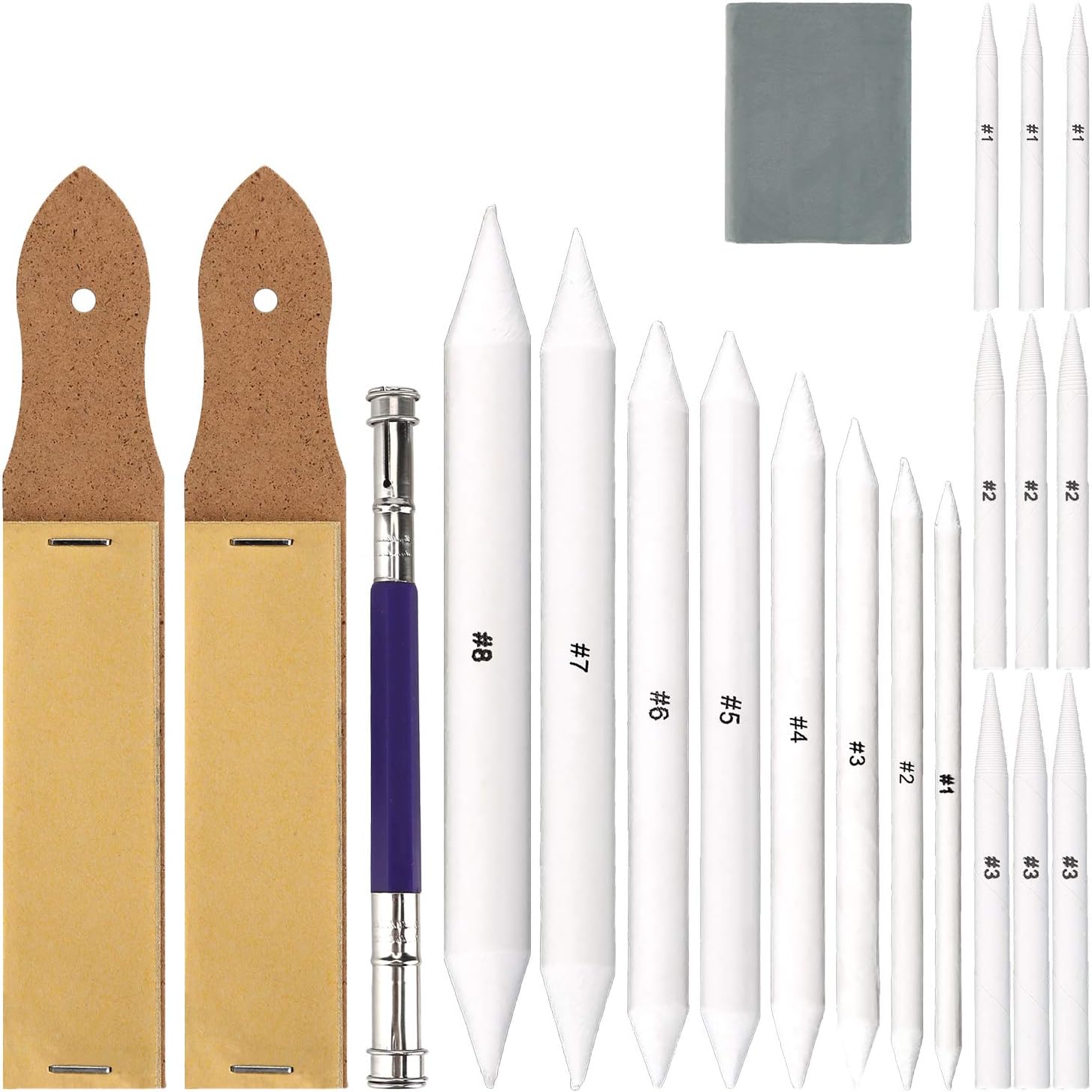 Wowoss 21 Pezzi Sfumino Per Disegno Set Di Sfumino Tortillion Set Di Tortillion Con 2 Pezzi Di Temperamatite Di Carta Vetrata E 1 Strumento Di Estensione Per Matita Disegnare