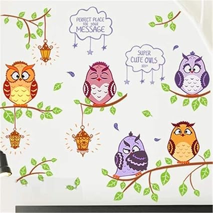 Adesivi Murali Bambini Simpatici Gufetti Porta Fortuna Su Un Ramo Di Cuoricini Colorati Wall Stickers Teneri Gufetti Con Ramo Gufi Colorati Simpatici Adesivo Decorativo Adesivio Gufi Porta Fortuna Per Spine Placche Adesivo