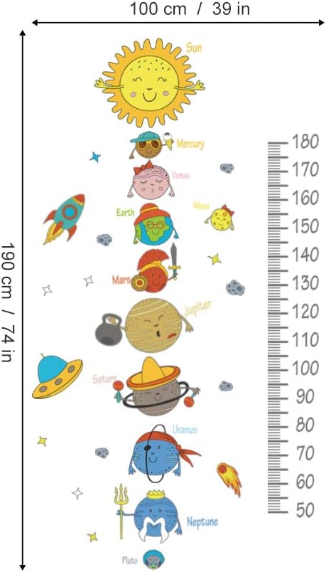 Decalmile Pianeti Nello Spazio Tabella Di Altezza Adesivi Da Parete Sistema Solare Adesivi Murali Camerette Bambini Camere Ragazzi Camera Da Letto Asilo Nido Decorazione Murale Decorazioni Murali Sticker Da Muro