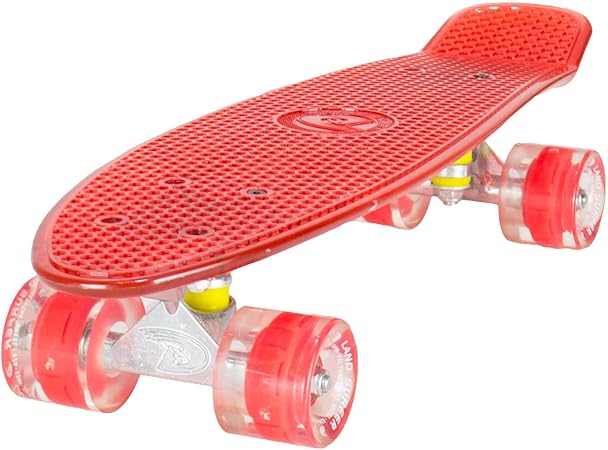Land Surfer Skateboard Cruiser Retro Completo 56cm Con Tavola Rossa Trasparente Cuscinetti Abec 7 Ruote Rosse Led Che Si Illuminano 59mm Pu Borsa Per Il Trasporto Amazon It Sport E Tempo Libero