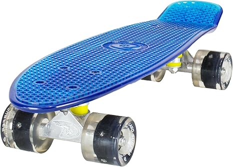 Land Surfer Skateboard Cruiser Retro Completo 56cm Con Tavola Blu Trasparente Cuscinetti Abec 7 Ruote Nere Led Che Si Illuminano 59mm Pu Borsa Per Il Trasporto Amazon It Sport E Tempo Libero
