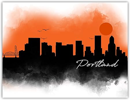 Amazon Com Ramini Brands Portland Skyline Drawing 11 X 14 Unframed Print Great Gift For Anyone Who S Heart Is In Oregon Beautiful Cityscape For Home Office Decor High Rise Offices