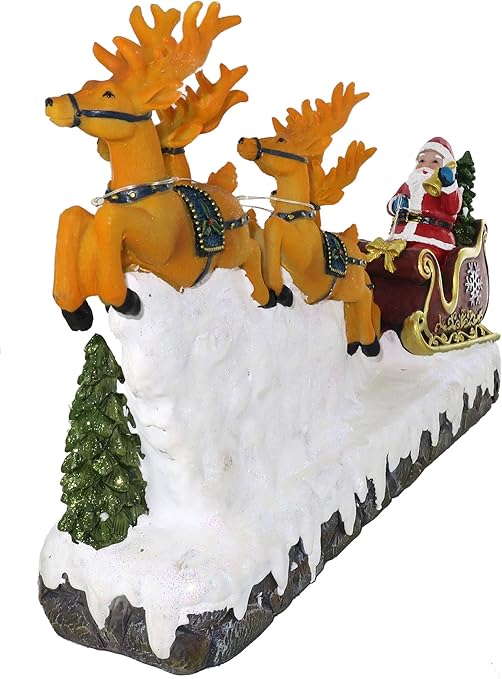 Casa E Cucina Musica 25 Twentyfive Slitta Di Babbo Natale Con Renne Luci 23 X 40 X 9 5 Cm Carillon E Carillon Con Statuetta