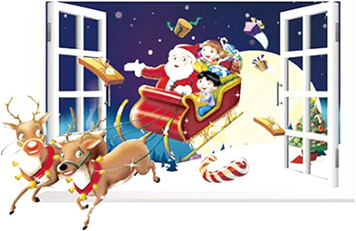 Creativo Babbo Natale Con Slitta Di Natale Sticker Murale Smontabile Per Porte E Finestre Della Decalcomania Del Pvc Della Decorazione Della Casa Amazon It Casa E Cucina