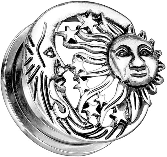 Beyoutifulthings Orecchino Plug Con Sole Luna E Stelle In Acciaio Chirurgico 6 25 Mm Colore Argento Antico E Acciaio Inossidabile Colore Argento Antigua Cod Psj19 10 Amazon It Gioielli