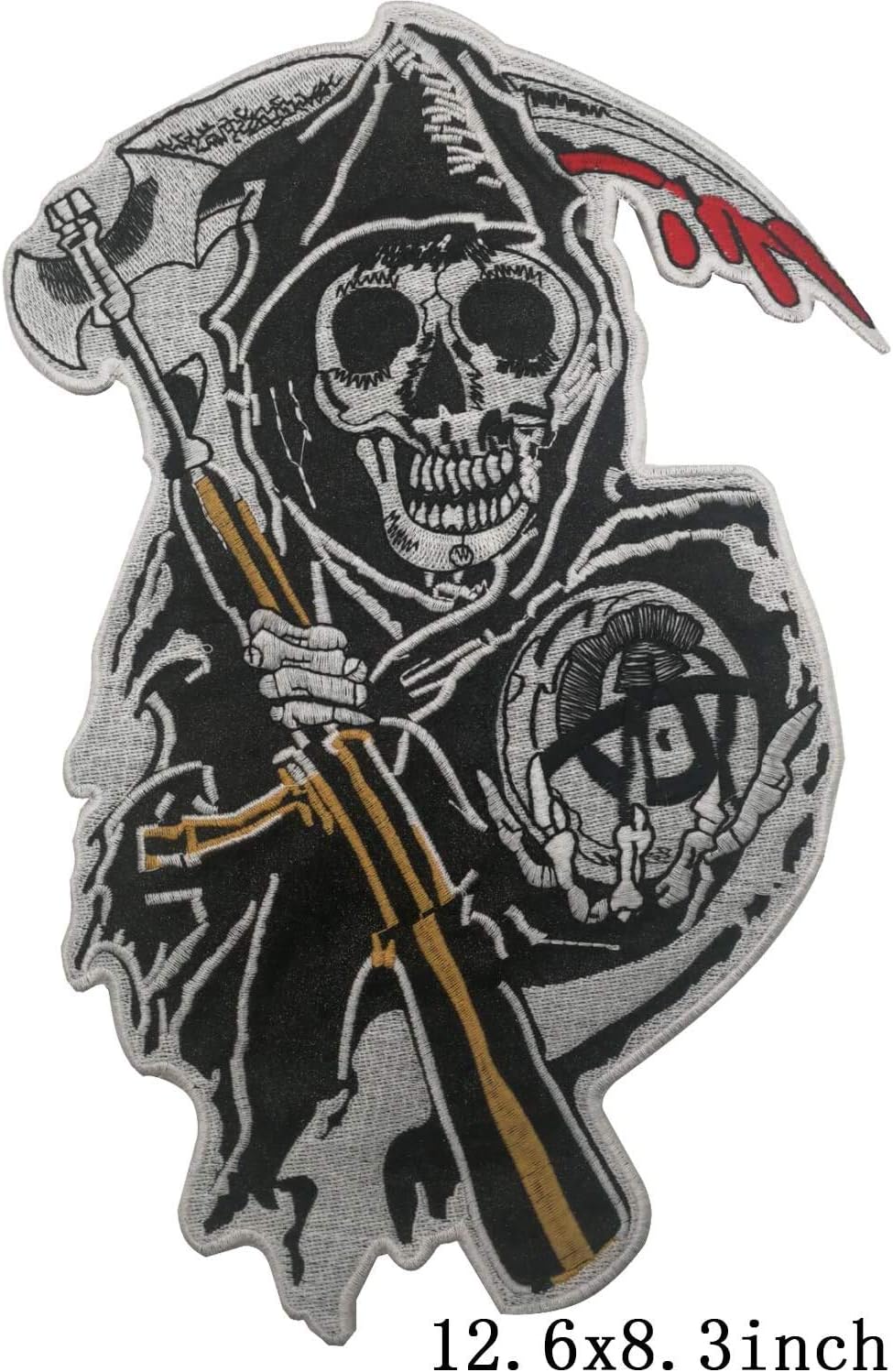 Sons Of Anarchy Grim Reaper Moto Biker Stile Grande Ricamato Toppa Applique Per Abbigliamento Mc Gilet Giacche Zaini 12 6 X 8 3 Pollici Casa E Cucina Hobby Creativi