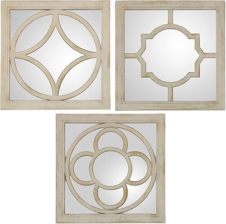 Drw Set Di 3 Specchi In Resina Con Vari Disegni In Bianco Antico 25 5 X 25 5 X 1 2 Cm Amazon It Casa E Cucina