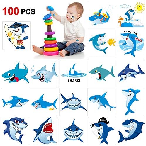 Howaf 100 Fogli Squalo Tatuaggi Temporanei Per Bambini Falso Tatuaggio Tattoos Adesivi Per Bambini Festa Di Compleanno Bomboniera Regalino Giocattolo Amazon It Bellezza