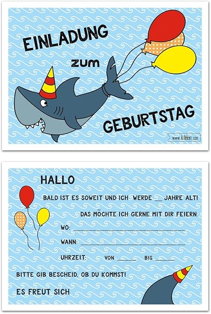Set Di 10 Biglietti Di Invito Per Compleanno Per Bambini Motivo Squalo 14 8 X 10 5 Cm Amazon It Cancelleria E Prodotti Per Ufficio