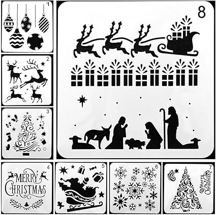 Stencil Di Pittura Stencil Di Disegno Di Natale 8 Pezzi Diversi Stili Di Plastica Di Natale