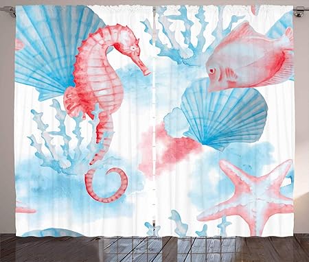 Ambesonne Nautical Decor Collection Conchiglie Cavalluccio Marino E Pesce Spiaggia Sabbiosa Esotico Stilizzato Effetto Acquerello Stampa