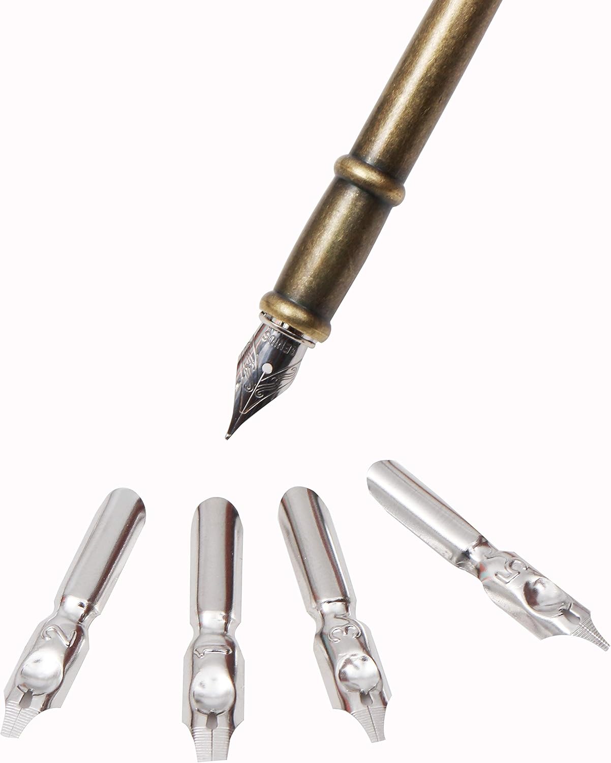 Disegno Vintage Calligrafia Penna A Immersione Nero Riuty Feather Quill Pen Penna Stilografica Con 6 Pennini Per Art And Craft Penne Calligrafiche Penne Matite Scrittura E Correzione