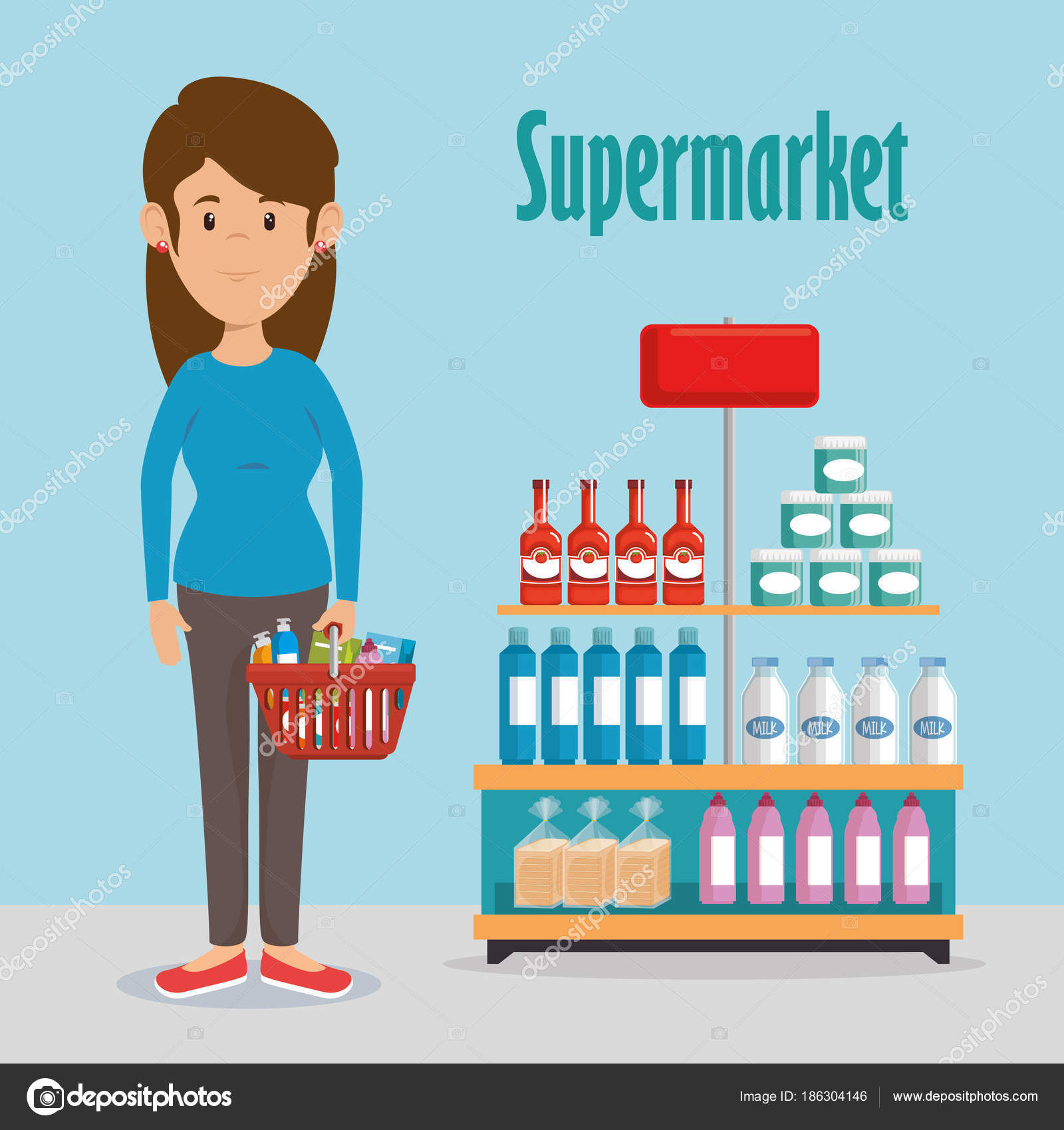 Donna Con Supermercato Generi Alimentari Vettoriali Stock C Yupiramos 186304146